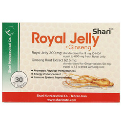 - قرص رویال ژلی جینسینگ شاری، حاوی رویال ژلی تازه و عصاره ریشه جینسنگ آسیایی