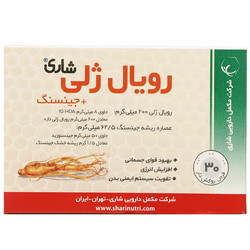 مکمل رویال ژلی و جینسنگ شاری حاوی عصارهی ریشهی گیاه جینسنگ و رویال ژلی است که به عنوان یک تونیک مغذی، جهت بهبود قوای جسمانی، افزایش انرژی و کمک به تقویت سیستم ایمنی بدن طراحی شدهاست.جینسنگ یکی از پر مصرفترین گیاهان دارویی است که عمدتا به منظور افزایش توانمندی ذهنی و جسمی، کنترل استرس، افزایش تمرکز، کاهش خستگی مفرط، کاهش دوره نقاهت، تقویت قوای ج ن س ی و تقویت سیستم ایمنی بکار میرود. رویال ژلی یک ماده ژلهای سفید رنگ میباشد که توسط زنبورهای کارگر تولید شده و فقط زنبور ملکه و نوزادانش از آن استفاده میکنند. رویال ژلی حاوی گلیکوپروتئینها، کربوهیدراتها، چربیها، انواع مواد معدنی و ویتامینهاست. ترکیب گلیکوپروتئینی رویال اکتین (Royalactin) از اجزای اصلی رویال ژلی و مسئول بسیاری از خواص آن میباشد. رویال ژلی در کمک به درمان بیماریهای مزمن (مانند دیابت و بیماریهای قلبی عروقی)، تنظیم سیستم ایمنی، جلوگیری از سیر پیشرفت بیماریهای تحلیل برندهی سیستم عصبی، کند کردن فرآیند پیری، بهبود زخم و کاهش علائم ناشی از یائسگی مفید است.
