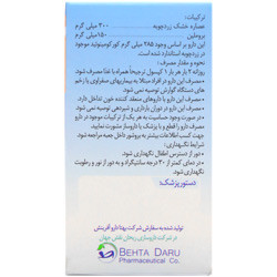 روزانه 2 بار هر بار 1 کپسول ترجیحا همراه غذا مصرف شود.ترکیبات: