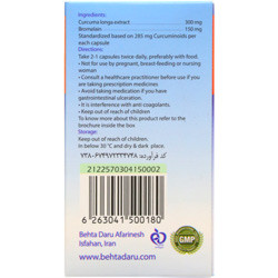 - حاوی عصاره خشک گیاه زردچوبه (Curcuma longa) و آنزیم بروملین