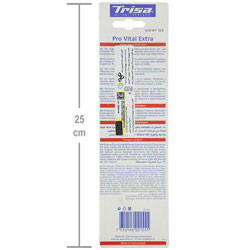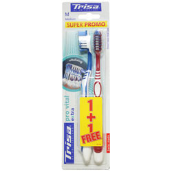مسواک دوتایی اکسترا پرو ویتال تریزا از سری مسواک های تریزا سوئیس می باشد که مناسب برای ماساژ لثه می باشد.در بسته این مسواک دو عدد مسواک قرار گرفته است. این مسواک دارای گردن انعطاف پذیر می باشد. پشت این مسواک دارای زبان پاک کن نرم جهت حذف پلاک و کاهش بوی بد دهان می باشد. الیاف کاملا ته گرد این مسواک جهت پاکسازی ملایم و موثر سطوح دندان ها و لثه بکار می رود. فیلامنت بلند و زاویه دار این مسواک نهایت پاکیزگی را برای دندان ها و فضای بین دندانی به ارمغان می آورد.