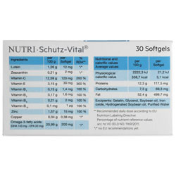 نوتری شوتس ویتال یک مکمل رژیمی غذایی برای تقویت بینایی و درمان بیماری چشمی تخریب پیشرفته ماکولا وابسته به سن AMD ( Advanced age related macular degeneration) می باشد. نوتری شوتس ویتال حاوی مقادیر نسبتا زیاد ویتامین های E،C ،B و عناصر روی (Zn) و مس (Cu) بمنظور تکمیل نیازهای ریز مغذی مورد نیاز بیماران AMD است. همچنین محتوی تراز بالای ی از کاروتنوئید های لوتئین و Zeaxanthin و نیز اسیدهای چرب ضروری امگا 3 می باشد. بیماری تخریب پیشرفته ماکولا (لکه زرد شبکیه) وابسته به سن یکی از عمده ترین علل از دست رفتن بینایی مرکزی چشم است. امروه بعلت بالا رفتن سطح متوسط طول عمر این بیماری رواج بیشتری پیدا کرده است. از آنجایی که این بیماری سبب اختلال در مهمترین بخش بینایی یعنی ماکولا (لکه زرد شبکیه چشم) رخ میدهد که مسئول تیزبینی در خواندن تماشای تلویزیون، تشخیص چهره افراد و دید هنگام رانندگی می باشد. در شرایط پیشرفته بیماری چشم قادر به انجام اعمال مذکور نمی باشد. با دارا بودن خواص آنتی اکسیدان ویتامین های E، C و Zeaxanthin پژوهشهای علمی ثابت کرده اند که استفاده از مکمل های حاوی مواد مغذی لوتئین، آنتی اکسیدان، همچنین عناصر کمیاب روی (Zn) و مس (Cu) اثرات مثبت باز دارنده بر پیشرفت بیماری AMD دارد. بخصوص ویتامین E که کمک به محافظت سلولها از اکسید شدن می کند. لوتئین نیز مانند عینک های ضد آفتاب طبیعی عمل می کنند و با فیلتر نمودن اشعه پرانرژی آبی نور (UV) از صدمه زدن به سلول های فتورسپتور حساس شبکیه چشم جلوگیری می کنند. ثابت شده است که عنصر روی (Zn) از دید نرمال چشم محافظت می کند. اسیدهای چرب ضروری امگا3، EPA و بویژه DHA که از روغن ماهی بدست می آید و بدن قادر به ساختن آنها نیست، میبایست از طریق مکمل ها وارد بدن شوند. این محصول تحت لیسانس کمپانی شوتس ویتال آلمان و دارنده پروانه ساخت شرکت بین المللی پارس نامی دارو، در داروسازی دانا در ایران تولید شده است.