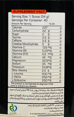 حاوی کراتین، کافئین و تائورین دارای کربوهیدرات با کیفیت
