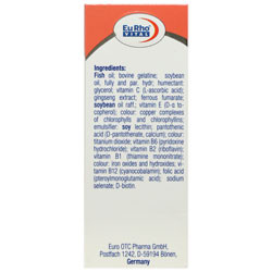 - حاوی روغن ماهی، ویتامین های B12، B6، B5، B2، B1، بیوتین، اسید فولیک، آهن، سلنیوم و عصاره جینسینگ