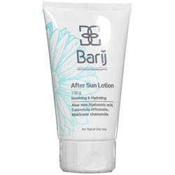 لوسیون پس از آفتاب باریج از ژل آلوئه ورا و روغن آووکادو تهیه و حاوی ویتامین های C و E به عنوان آنتی اکسیدان میباشد.