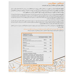 ویتامین های A, C, E و Zinc به عنوان منبع غنی از آنتی اکسیدان ها از آسیب رادیکال های آزاد به سلول ها جلوگیری نموده و علاوه بر تقویت سیستم ایمنی بدن، ترمیم و بازسازی بافت ها، سلامت چشم ها، بهبود التهابات، سبب محافظت از پوست در برابر پرتوهای زیانبار نور خورشید می گردد.
