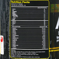 8 عدد قرص قبل از تمرین و 8 عدد قرص نیم ساعت پس از تمرین مصرف نمایید. این مکمل باید همراه با آب زیاد مصرف شود تا مواد زاید حاصل از متابولیسم پروتئین از بدن دفع و اختلال عضلانی هنگام تمرین ایجاد نگردد.