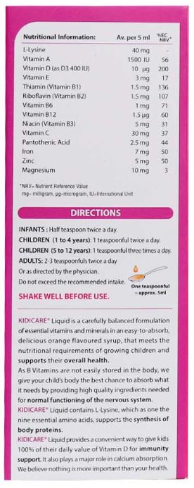 - شربت کیدیکر با دارا بودن ترکیبی از ویتامین C ،D ،E و زینک، در تقویت سیستم ایمنی کودکان موثر است.
