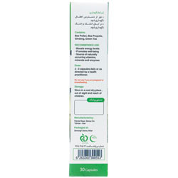 - افزایش دهنده انرژی بدن 100 درصد طبیعی اجزای فرآورده: هر کپسول حاوی عصاره گیاه چای سبز، سیبرین جینسینگ، عصاره بره موم و گرده زنبور عسل می باشد. مواد جانبی: شامل آویسل، استئارات منیزیم و ائروزیل می باشد.