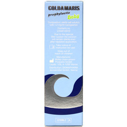 ترکیبات کلداماریس پروفیلاکتیک بیبی: این فراورده یک محلول شفاف، بدون رنگ، ویسکوز و بدون بو است. هر میلی لیتر از محلول حاوی 1.2 میلی گرم کاراژینان (کارژلوز) می باشد. کاراژلوز یک ترکیب دریایی مشتق از جلبک قرمز است که با ویروس های سرماخوردگی مقابله می کند. کلداماریس پروفیلاکتیک بیبی برای جلوگیری از خشکی مخاط و رطوبت رسانی به مخاط بینی به کار می رود و دارای اثرات ضد ویروسی در برابر ویروس های عامل سرماخوردگی می باشد. کلداماریس پروفیلاکتیک بیبی برای هر گروه سنی از 6 ماه به بالا مناسب است. آلودگی هوا یا توقف مکرر در مکان هایی با رطوبت کم هوا مانند فضاهای بسته، داخل اتوموبیل، قطار یا هواپیما باعث خشکی و تحریک مخاط بینی می شوند. هر دو فاکتور، آلودگی هوا و رطوبت پایین باعث خشکی مخاط بینی شوند. عملکرد محافظتی بینی که از ورود ذرات غبار، گرده، مواد آلرژن و ... به سیستم تنفسی جلوگیری می کند، تنها در صورت سلامت سلول های اپیتلیال مخاط بینی بصورت صحیح انجام می شود. بینی اصلی ترین عامل ورود عوامل عفونت های ویروسی ایجاد کننده سرماخوردگی به بدن است. ویروس های سرماخوردگی پس از ورود به بدن به مخاط بینی متصل شده و در آنجا تکثیر و انتشار می یابند. این امر باعث بروز علائم سرماخوردگی شامل آبریزش بینی، گرفتگی بینی، گلو درد، سردرد، سرفه و غیره می شود. رطوبت فیزیولوژیک مخاط بینی روش دفاعی طبیعی بدن در برابر ویروس ها و باکتری ها از طریق عملکرد داخلی بدن است. بعلاوه کاراژلوز از پخش شدن و تکثیر ویروس های سرماخوردگی جلوگیری می کند. کلداماریس پروفیلاکتیک بیبی فاقد مواد نگهدارنده است. فیلتر استریل روی نازل اسپری باعث استریل ماندن آن حتی پس از دفعات متعدد مصرف می گردد. ویژگی های کلداماریس پروفیلاکتیک بیبی: کاراژلوز یک لایه مرطوب روی بینی ایجاد می کند. این لایه یک عملکرد محافظتی فیزیکی دارد و بعنوان سدی در برابر عوامل خارجی عمل می کند. این لایه مرطوب مدت طولانی تری نسبت به سایر محلول ها روی مخاط می ماند، بدون آنکه به عملکرد طبیعی اپیتلیوم مخاط بینی آسیبی برساند. بعلاوه این لایه از انتشار و تکثیر ویروس های سرماخوردگی جلوگیری می کند.