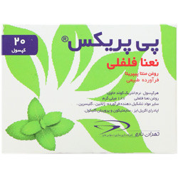- پی پریکس فرآورده طبیعی حاوی 187 میلیگرم روغن نعنا فلفلی به ازای هر سافتژل