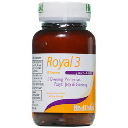 مکمل رویال 3 حاوی عصارهی گیاه جینسنگ، روغن گل مغربی و رویال ژلی است که جهت احیا و زیبایی پوست، مو و ناخن، متعادل ساختن هورمونها و بهبود قوای ج ن س ی طراحی شدهاست. جینسنگ یکی از پر مصرفترین گیاهان دارویی است که عمدتا به منظور افزایش توانمندی ذهنی و جسمی، کنترل استرس، افزایش تمرکز، کاهش خستگی مفرط، کاهش دوره نقاهت، تقویت قوای ج ن س ی و تقویت سیستم ایمنی بکار میرود. از دانههای گل مغربی، روغنی استخراج میشود که به دلیل محتوای بالای اسید چرب گاما لینولنیک اسید، در کاهش عوارض یائسگی، سندرم پیش از قاعدگی، تسکین درد پستان ناشی از تغییرات هورمونی در دوران قاعدگی، کاهش علائم افراد مبتلا به آرتریت روماتوئید، کاهش علائم نوروپاتی دیابتی، درمان اگزما و درماتیت آتوپیک به کار میرود. رویال ژلی یک ماده ژلهای سفید رنگ میباشد که توسط زنبورهای کارگر تولید شده و فقط زنبور ملکه و نوزادانش از آن استفاده میکنند. رویال ژلی حاوی گلیکوپروتئینها، کربوهیدراتها، چربیها، انواع مواد معدنی و ویتامینهاست. ترکیب گلیکوپروتئینی رویال اکتین (Royalactin) از اجزای اصلی رویال ژلی و مسئول بسیاری از خواص آن میباشد. رویال ژلی در کمک به درمان بیماریهای مزمن (مانند دیابت و بیماریهای قلبی عروقی)، تنظیم سیستم ایمنی، جلوگیری از سیر پیشرفت بیماریهای تحلیل برندهی سیستم عصبی، کند کردن فرآیند پیری، بهبود زخم و کاهش علائم ناشی از یائسگی مفید است.