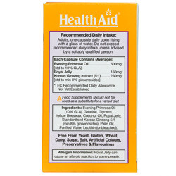 رویال ژلی علاوه بر آثار آنتی اکسیدان و ضدالتهاب، دارای خواص تنظیم کننده سیستم ایمنی میباشد. همچنین در مطالعات برون تنی و درون تنی، آثار مثبت رویال ژلی بر سیستم ایمنی ذاتی به اثبات رسیدهاست. جینسینگ با کمک به کاهش استرس و خستگی، میتواند فعالیت سیستم ایمنی را بهبود بخشد و بدن را در برابر عفونتها مصون نماید. جینسنگ قادر است از طریق تحریک سیستم ایمنی، توانایی دفاعی بدن (افزایش فاگوسیتوز، تحریک تولید اینترفرون و افزایش فعالیت سلولهای کشندهی طبیعی) را در مقابله با استرسهای محیطی و عوامل بیماری زا افزایش دهد.