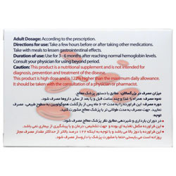 میزان مصرف در بزرگسالان: مطابق با دستور پزشک معالج می باشد. نحوه مصرف: همراه با غذا و چند ساعت قبل و یا بعد از سایر داروها مصرف شود. دوره مصرف: این فرآورده را به مدت 3-6 ماه پس از بازگشت هموگولوبین به سطوح طبیعی، مصرف نمایید. جهت مصرف به مدت طولانی تر با پزشک معالج مشورت کنید.