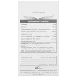 - موارد منع مصرف و نکات قابل توصیه: بیش از دوز تعیین شده مصرف نشود. در صورت حساسیت به هر یک از اجزای این فرآورده، از مصرف آن خودداری گردد. این فرآورده حاوی کافئین است. از مصرف زیاد سایر مواد کافئین دار که عوارض جانبی را تشدید می کنند اجتناب شود. اگر تحت درمان دارویی هستید، قبل از مصرف این فرآورده با پزشک خود مشورت کنید. اگر عوارض جانبی مشاهده کردید مصرف دارو را قطع کنید. یا با پزشک مشورت نمایید. این فرآورده حاوی کروم است که می تواند حساسیت به انسولین را تقویت کرده و سطح خونی گلوکز را تحت تاثیر قرار دهد و در افراد دیابتی با هیپوگلیسمیک باید تنها با مشورت پزشک مصرف شود. این فرآورده نباید همزمان با آمفتامین ها مصرف شود.