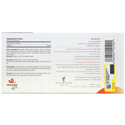 هر ساشه پودری جوشان (9.2 گرم) حاوی 1000 میلی گرم ویتامین ث با دو طعم پرتقال و انواع توت محتوی 20 عدد ساشه (10 عدد هر طعم)
