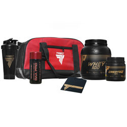 این پک شامل 6 محصول به شرح زیر است: 1- پروتئین وی 100 گلد کرلاین 1500 گرمی شکلاتی (ترک نوتریشن): فرمولی غنی از پروتئین خالص برای عضله سازی و کنترل وزن حاوی BCAA و L-Glutamine حاوی 22 گرم پروتئین کمک به تامین بخشی از پروتئین مورد نیاز کمک به حفظ و سلامت عضلات 2- کراتین 100 درصد گلد کر 250 گرمی (ترک نوتریشن): حاوی 100% کراتین مونوهیدارت کراتین با کیفیت بالا حاوی ویتامین ث و سدیم مناسب برای استفاده روزانه بدون طعم کمک به عضله سازی و حفظ سلامت عضله برای ورزشکاران 3- دی ای ای پرو 100 عددی (سایتک نوتریشن): مناسب برای ورزشکاران کمک به ترشح نرمال تستوسترون و سنتز نرمال پروتئین برای ورزشکاران 4- کیف ورزشی ترک نوتریشن 5- شیکر ترک نوتریشن 6- تی شرت ورزشی ترک نوتریشن