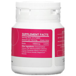 - تداخلات و موارد منع مصرف: در صورت مصرف مکمل های حاوی بیوتین بیش از مقادیر توصیه شده، ممکن است در جواب تست های آزمایشگاهی هورمونی مانند تیروئید تداخل ایجاد شود. در دوران بارداری و شیردهی با پزشک خود مشورت کنید. این فرآورده مکمل است و جهت تشخیص، درمان و پیشگیری از بیماری نمی باشد. در صورت نیاز به تجوز داروی جدید توسط پزشک، وی را در جریان مصرف کلیه داروها و مکملهایی که از قبل استفاده می کردید بگذارید.