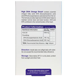 کپسول نرم ژلاتینی امگا3 (High DHA High DHA Omega 3) حاوی اسیدهای چرب امگا 3 ضروری DHA و EPA حاصل از روغن ماهی است. این محصول سطح بالایی از DHA را فراهم می کند که به حفظ بینایی طبیعی و عملکرد مغز کمک می کند. DHA و EPA در عملکرد طبیعی قلب نقش دارند. این محصول تحت امتیاز و لیسانس شرکت Vitapharmed کشور سوئیس، دارنده پروانه ساخت شرکت فاریاب دارو و تولید و بسته بندی شده در کارخانه داروسازی مایسا در ایران می باشد.