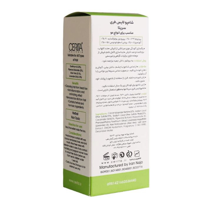 - شامپو ضد شپش لایس فری سریتا قابل استفاده برای اطفال بالای یک سال و بزرگسالان
