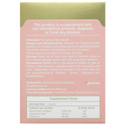 - این محصول شامل 5000 میلی گرم کلاژن هیدرولیز شده (مارین) نوع 1 و 3، 50 میلی گرم هیالورونیک اسید و 80 میلی گرم ویتامین سی می باشد.