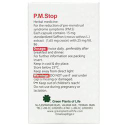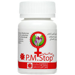 - پی ام استاپ، فرآورده گیاهی حاوی عصاره زعفران و ویتامین B6