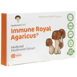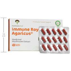 ایمیون رویال آگاریکوس قارچ آگاریکوس بلازی یکی از جدیدترین و محبوب ترین قارچ های دارویی محسوب می شود. فرآورده های دارویی از این قارچ در بیش از 30% مبتلایان به سرطان های اورولوژی در ژاپن مورد استفاده قرار می گیرد. آگاریکوس بلازی حاوی سطح بالا بتا گلوکان (ترکیبات شناخته شده تقویت سیستم ایمنی) می باشد. اثرات این قارچ بر روی سیستم ایمنی علاوه بر بتا گلوکان به دلیل پلی ساکاریدها با ساختار آلفا گلوکان مشابه آنچه در ترکیب AHCC (ترکیب همبسته با هگزوز فعال) است نیز می باشد. معرفی قارچ دارویی آگاریکوس بلازی: قارچ آگاریکوس بلازیی (Agaricus blazei) قارچی دارویی، با طعم و مزه شیرین و عطر بادام می باشد که به قارچ بادام (Almond Mushroom) نیز شهرت دارد. تحقیقات علمی تایید می کنند که این قارچ سبب تقویت سیستم ایمنی می شود از اینرو به عنوان یک قارچ دارویی مهم و پرکاربرد شناخته شده است. قارچ آگاریکوس بلازی حاوی مقادیر بالایی بتا گلوکان (ترکیبات فعال ایمونولوژیک) می باشد. مشخص شده است که علاوه بر بتا گلوکان ها، پلی ساکاریدهای آلفا گلوکان نیز اثرات قابل توجهی بر اثر تقویت کنندگی سیستم ایمنی این قارچ دارند. ترکیبات فعال اصلی و مکانیسم اثر: پلی ساکارید های این قارچ شامل چندین جز فعال ایمنولوژیک با وزن مولکولی کم می باشند که از آن جمله می توان به کمپلکس گلوکان α-4، 1 و α-6، 1 چندین کمپلکس پلی ساکارید پروتئین، یک گلوکومنان با زنجیره اصلی از مانوپیرانوزیل هایی که با اتصالات بتا 2، 1 به هم متصلند و نیز هتروپلی ساکاریدهایی که به طور عمده از گلوکز، آرابینوز و مانوز تشکیل شده اند، نام برد که همگی فعالیت ضد تومور نشان می دهند. این نکته قابل توجه است که افزایش در تنوع ساختاری پلی ساکارید ها با بالغ شدن اندام بارده قارچ مشاهده می شود. این قارچ سبب افزایش تولید اینترفرون ها، اینترلوکین ها و سلول های کشنده طبیعی می شود. این قارچ در کاهش عوارض جانبی شیمی درمانی سرطان موثر است و اثرات افزایشی همراه با شیمی درمانی و پرتو درمانی در درمان سرطان دارد. خواص درمانی: -تقویت کننده قوی سیستم ایمنی (تقویت سلول های سیستم ایمنی، ارتقاء پاسخ های ایمنی بدن در برابر عوامل بیماری زا) -کمک به درمان و بهبود سرطان (سایتوتوکسیک، مهار متاستاز و آنژیوژنز، کمک به درمان سرطان های دستگاه گوارش، ریه، رحم، تخمدان، آندومتر، پروستات) -اثرات هم افزایی همراه با شیمی درمانی و پرتو درمانی در درمان سرطان -کاهش عوارض جانبی شیمی درمانی (از جمله از دست دادن اشتها، ریزش مو، ثبات عاطفی و ضعف عمومی)