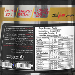 حاوی کربوهیدرات ها و پروتئین های مغذی حاوی 20 گرم پروتئین، انرژی 530 کالری و 107 گرم کربوهیدرات در هر سروینگ