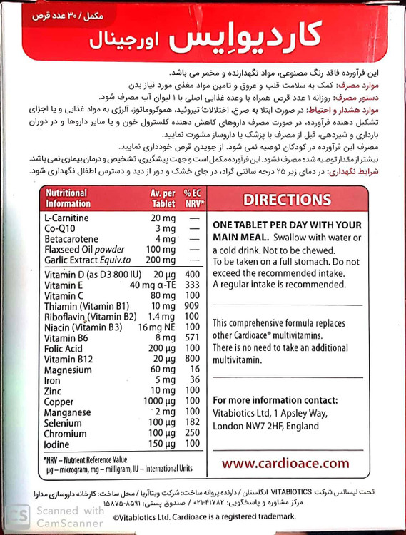 کپسول کاردیوایس ویتابیوتیکس انقضا 2025/08/20